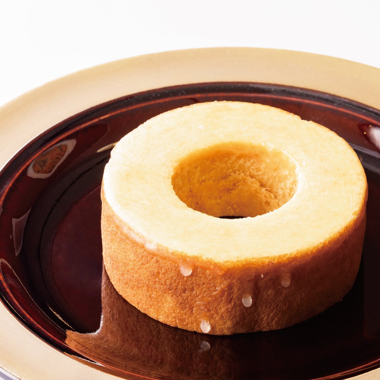 「焦がしバター」と「ふわっと」したメレンゲを生地に練りこみ、焼きながら蒸す工程を取り入れることで芳醇なバターの香りと、しっとりしながらも、ふわふわの食感を実現しました。バターを溶かしたグラスで天面をコーティングすることで、リッチな味わいに仕上げています。